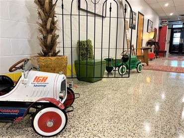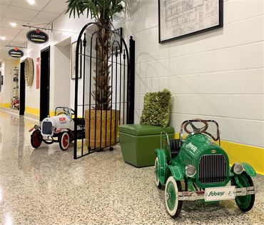 We have added pedal cars to provide nostalgia to the school hallways and Buggy Corral. We were surprised to learn that so many people collect them, so we created this page for you to enjoy.